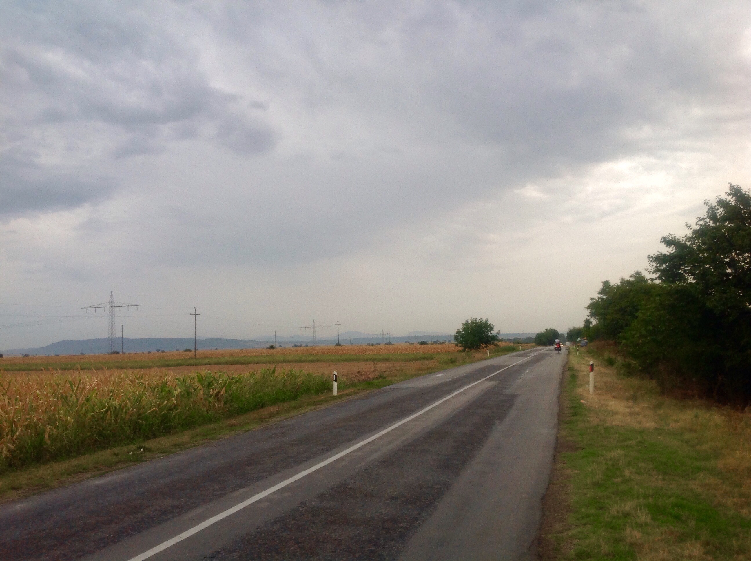 The morning consisted of riding down out of the mountains and into the flat land that ran between the last big town in Serbia before the border of Pirot. The ride down was similar to the previous days, narrow roads that ran along the hills. But today was overcast, and with a blustery headwind which slowed us a bit (but not much)