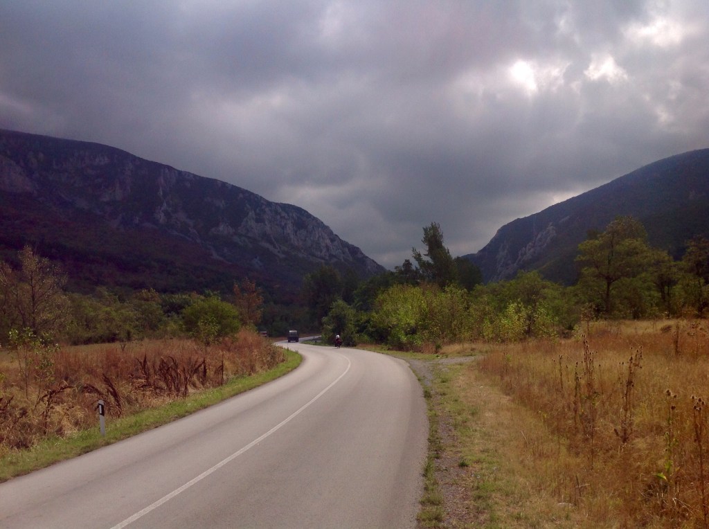 Out of Petrovac we rode on the flat, but soon we rounded a corner and saw mountains looming up to our left in a long continuous ridge save for a deep grove, a gorge, that looked like a gateway in some massive wall.