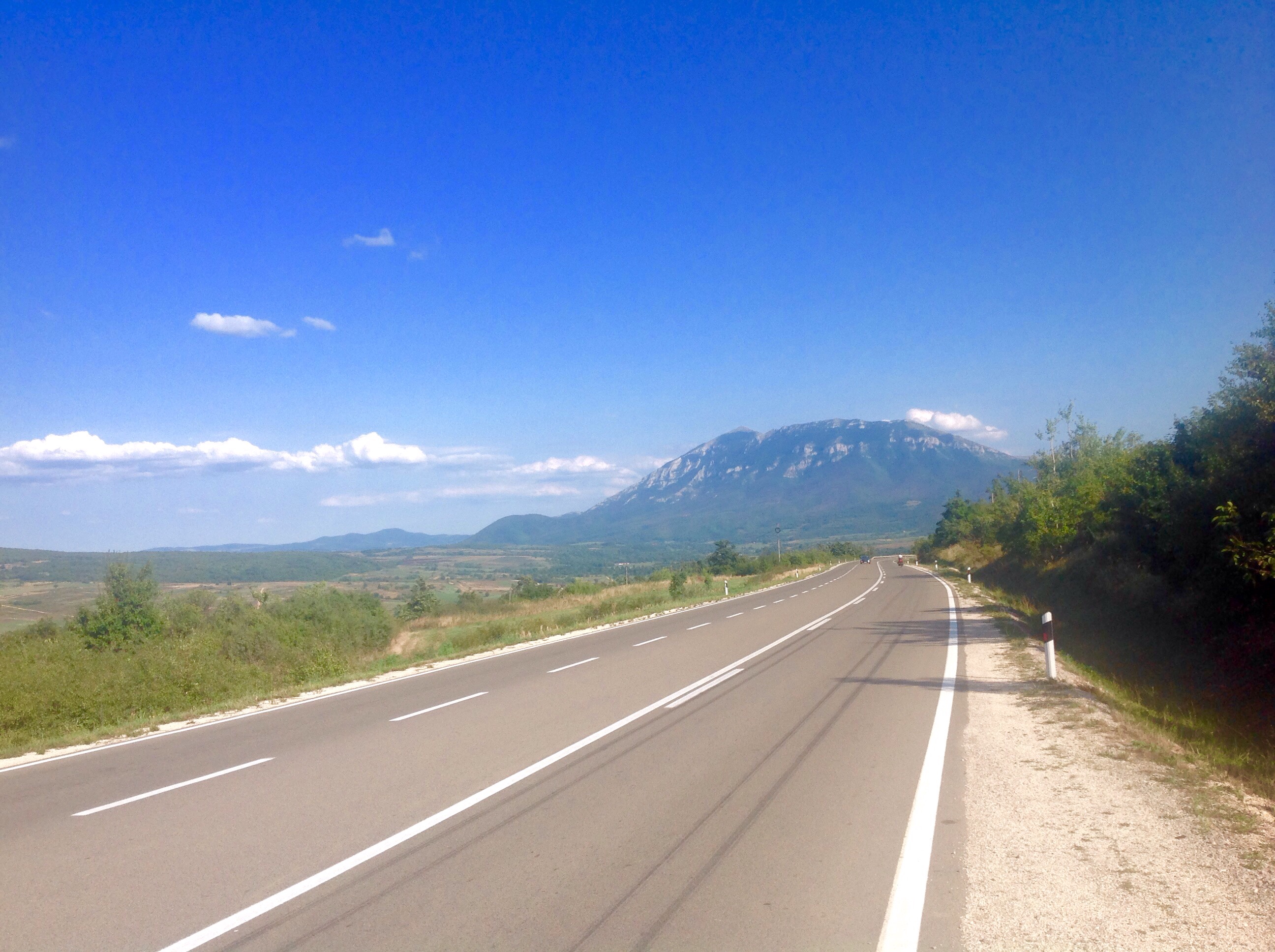 After lunch we got onto the secondary road we had been trying to reach and in comparison to what we had been riding before this was the best road in Europe. We crested a climb out of valley and found ourselves up on a plateau with a big mountain stretching up out of it and it w as under this vista that we rode out east to Boljevac, a town where we could get on another tertiary route south to the border.