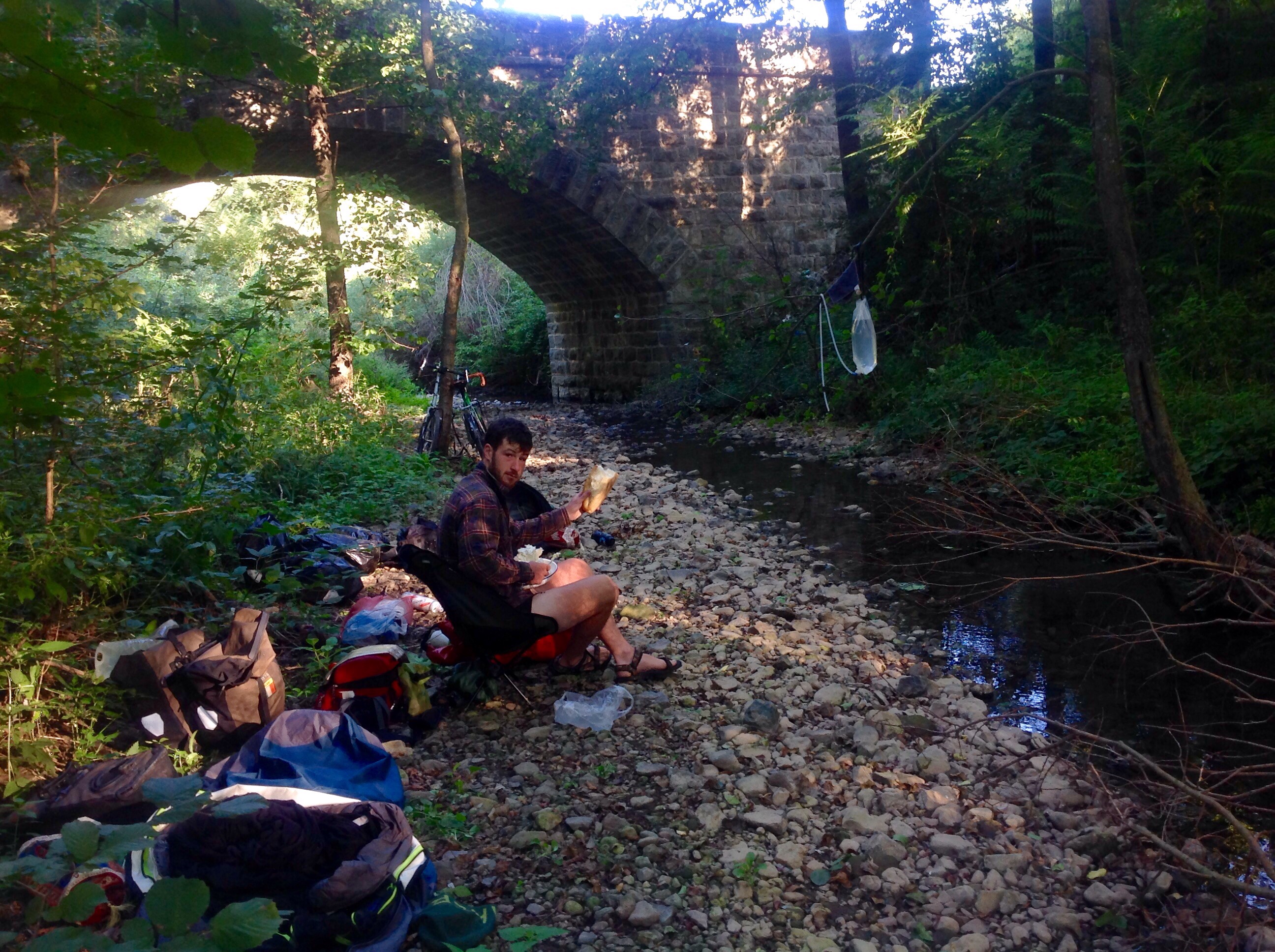 We ended up down by a stream next to an old stone bridge, one of our more picturesque camping spots, it’s always nice to find somewhere to sleep that isn’t the corner of a field.