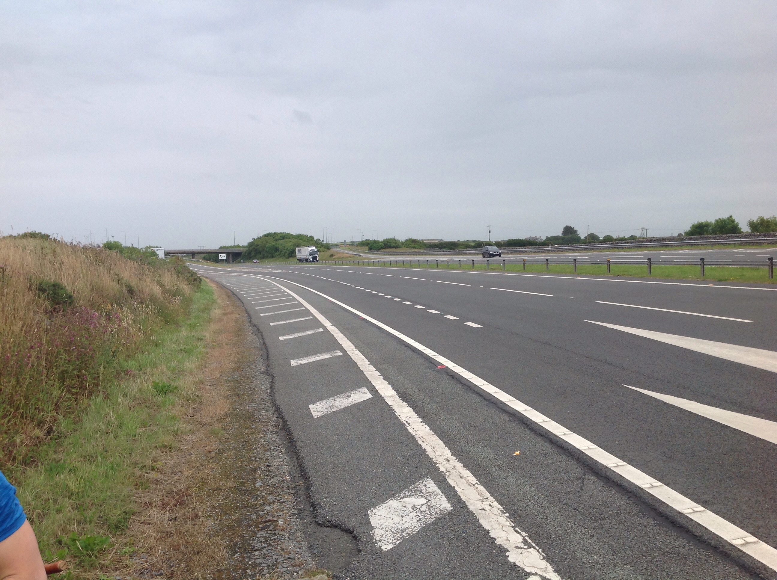 Flat roads and tailwind brought us to what we presumed to be about halfway to Hull in a little over an hour. We crossed the River Ouse and followed the motorway onwards to Hull.