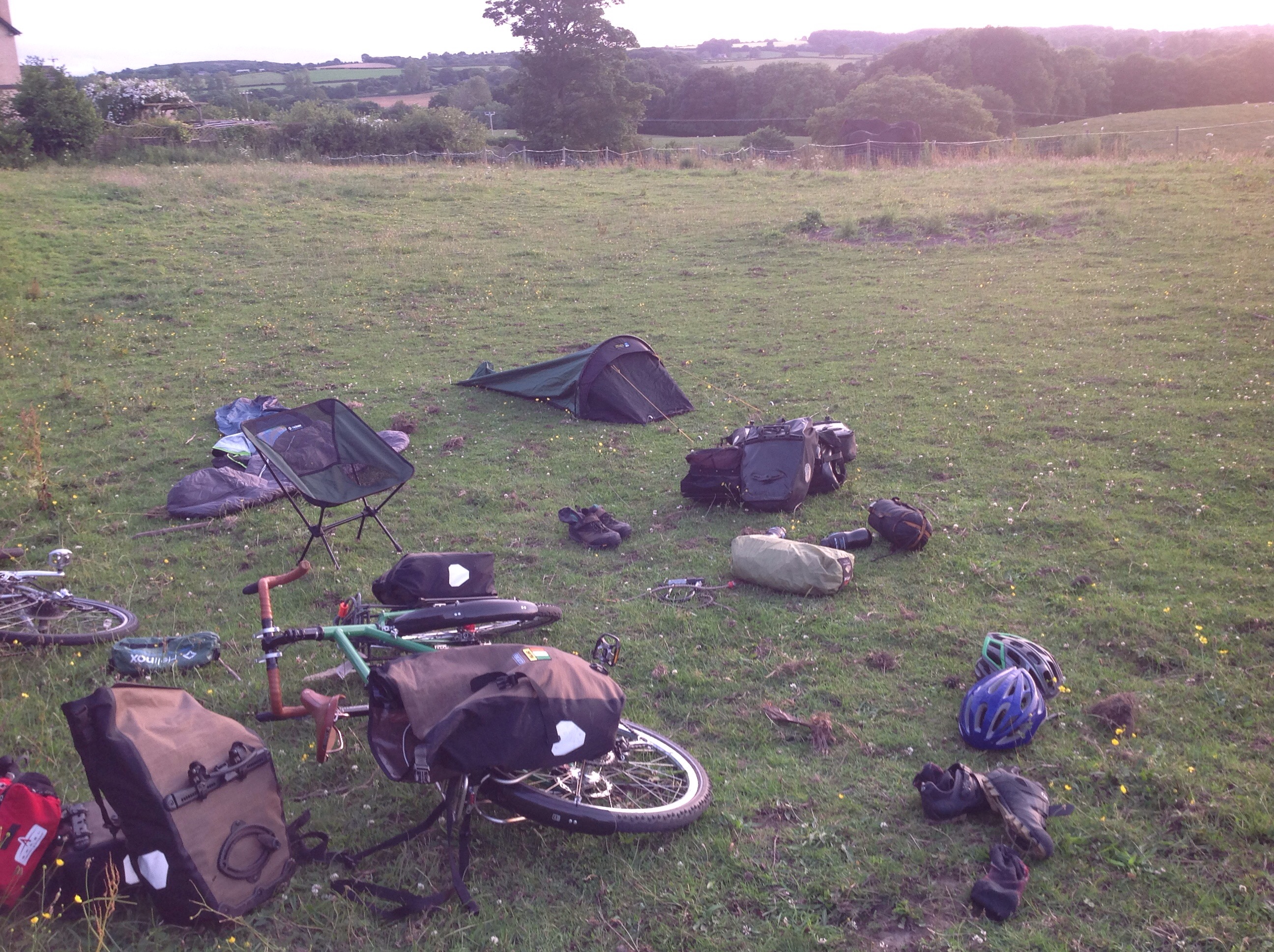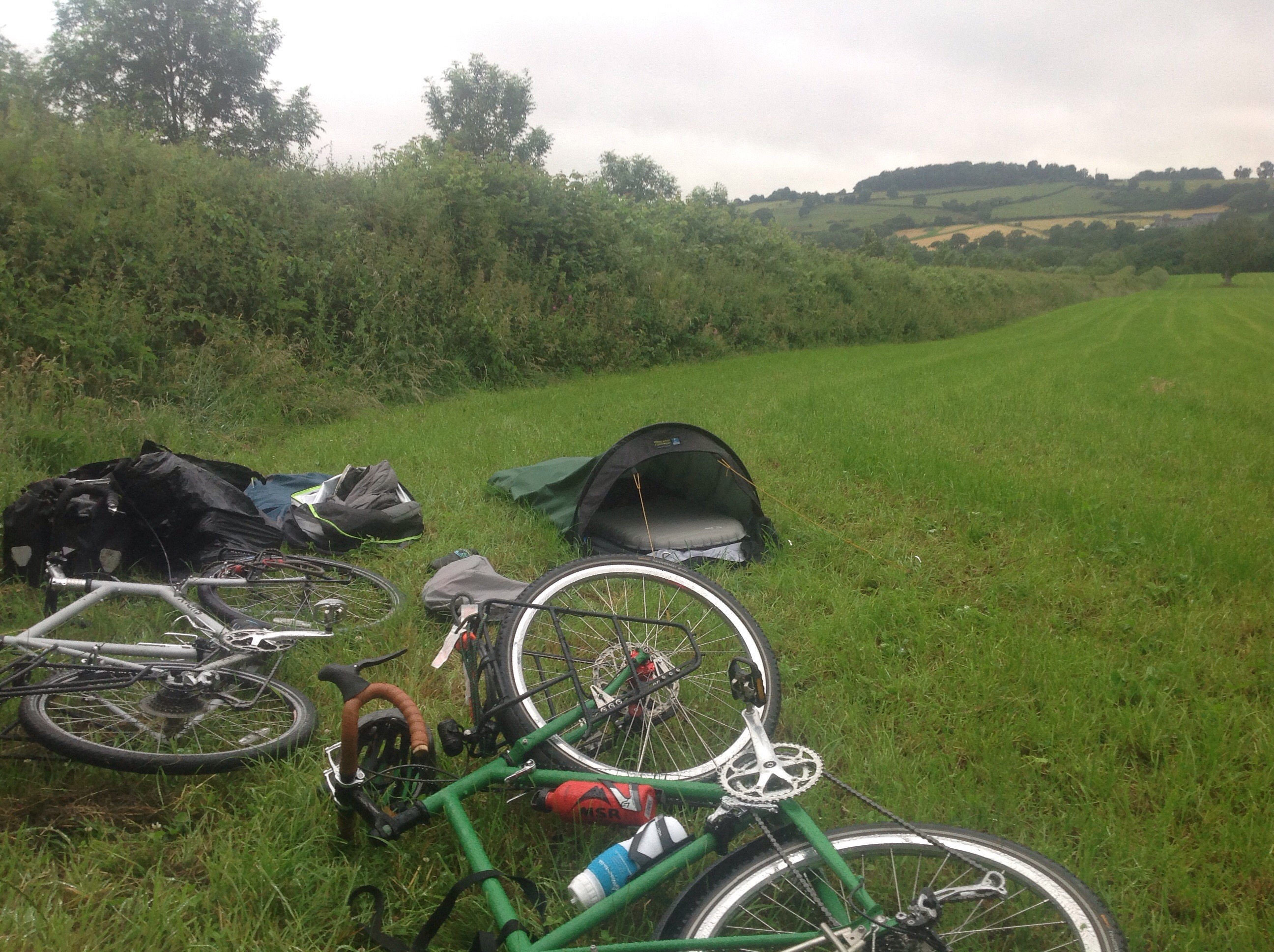 The rain started to come down towards the end of the ride. Camping in a field in Wales in the rain…a not so glamorous, but probably fitting, start to our journey