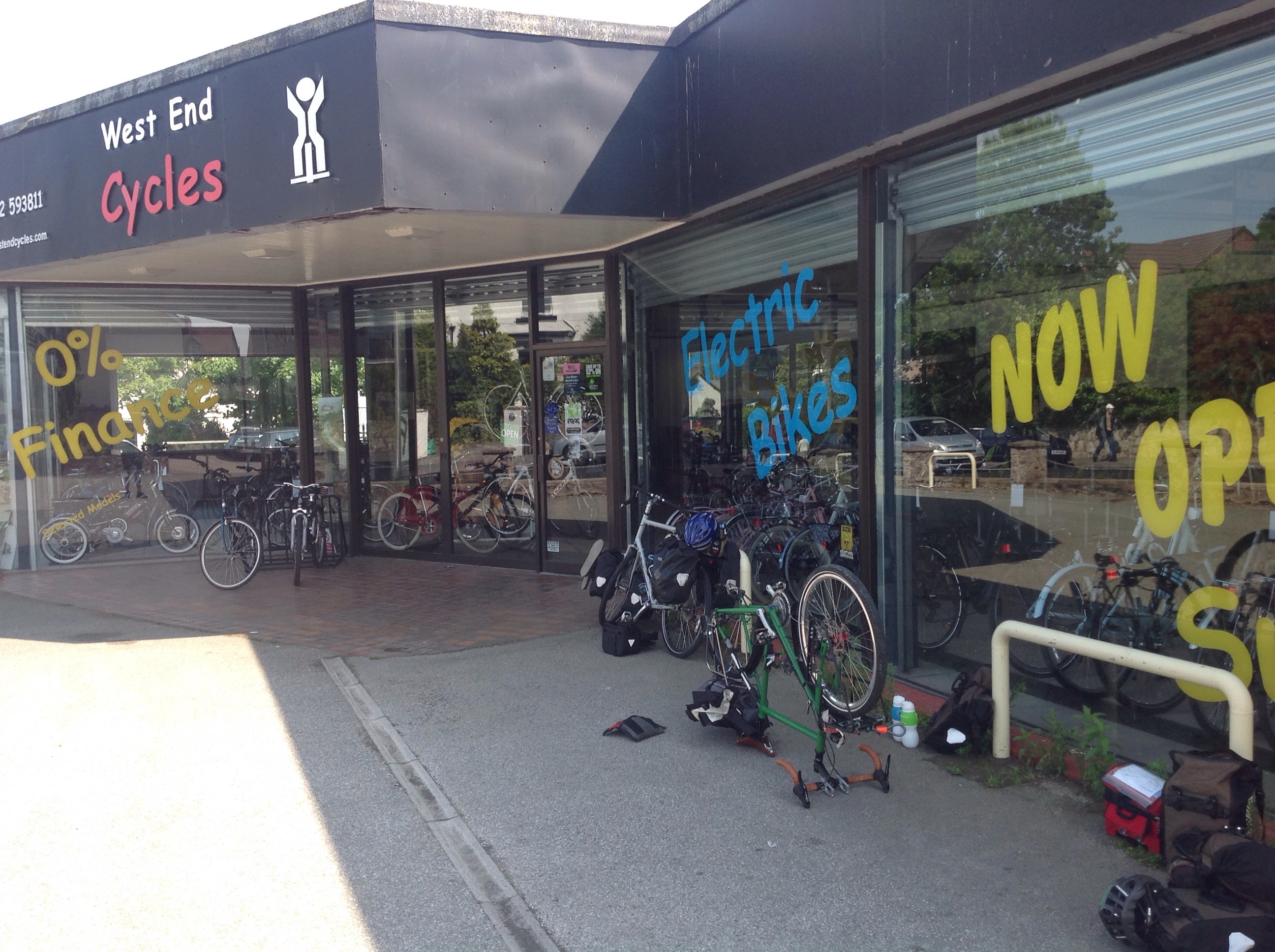 The ride from Colwyn to the bike store was short enough and here we found the culprit: a tiny piece of gear cable, about the width of a hair. After it was all sorted we joined back up with the route 5 onward towards Chester.
