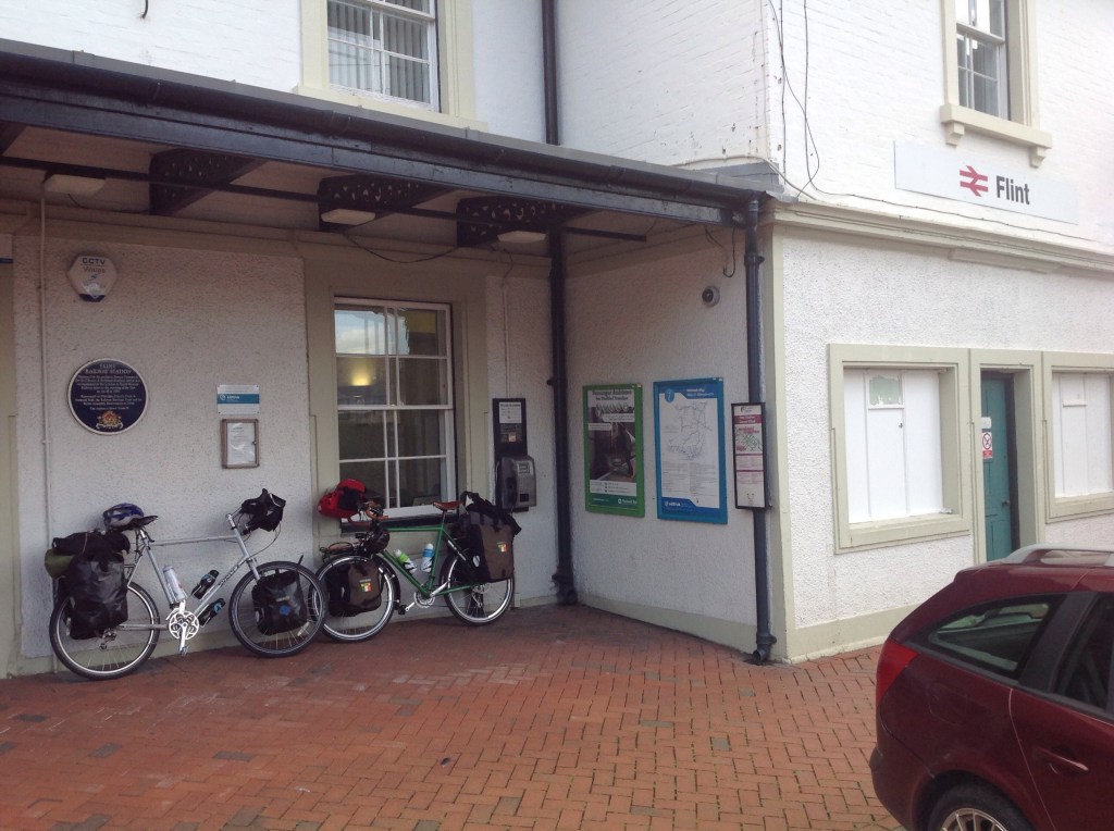 We had hoped to get to Chester today but the difficulties in the morning had delayed us by quite a bit. The route 5 turned inland and at 7:30 we found ourselves riding through the settlement of Flint. A local very kindly agreed to let us camp in his field for the night and we settled down to lentil dinner overlooking the green hills of North Wales