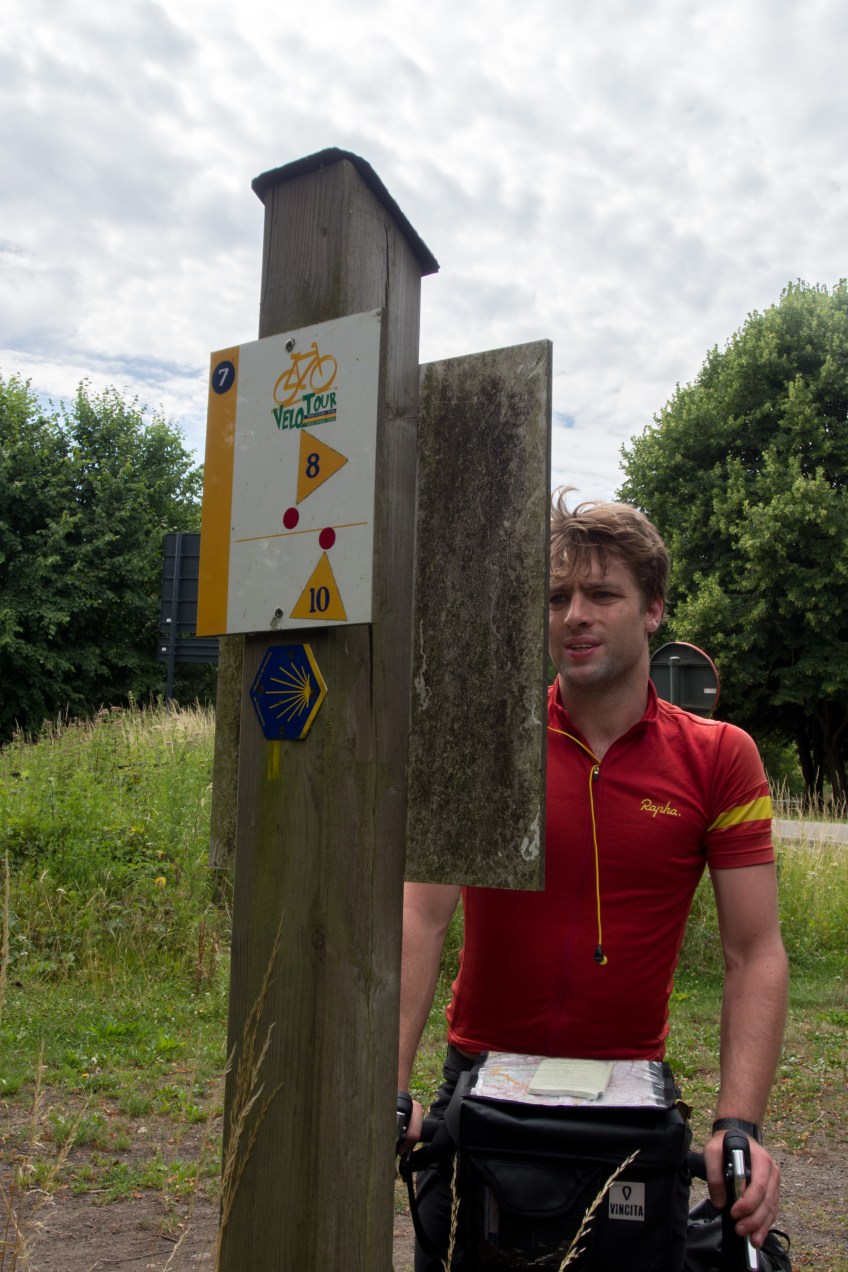 Post a comment or leave a trackback: Trackback URL. OLYMPUS DIGITAL CAMERA Looking for directions with the scallop shell pointing us towards Santiago