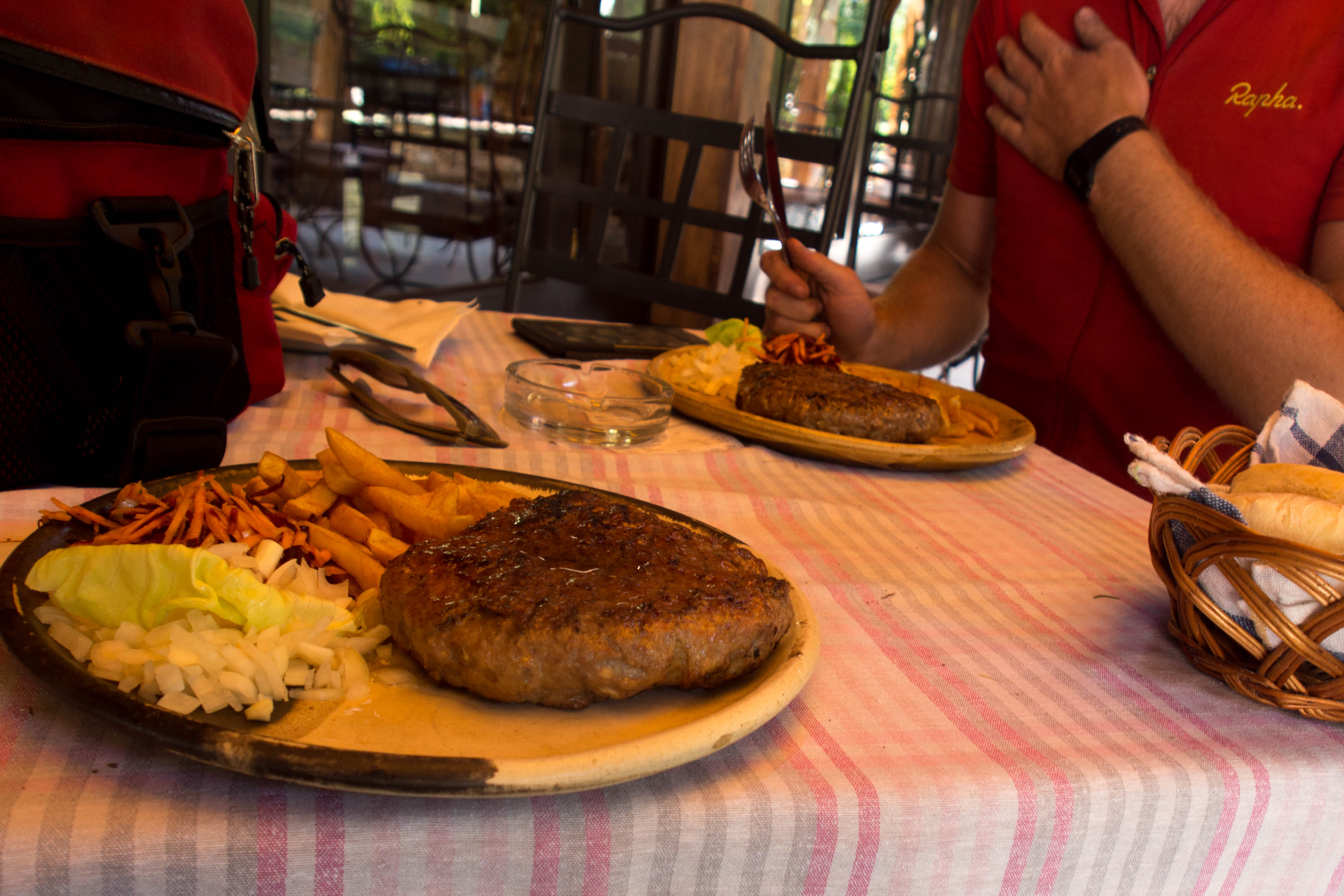 After lugging our bikes over an old tractor road we stopped at the first restaurant we found. We ordered “something good and were presented with the biggest burgers we’ve ever seen. The timing couldn’t have been better