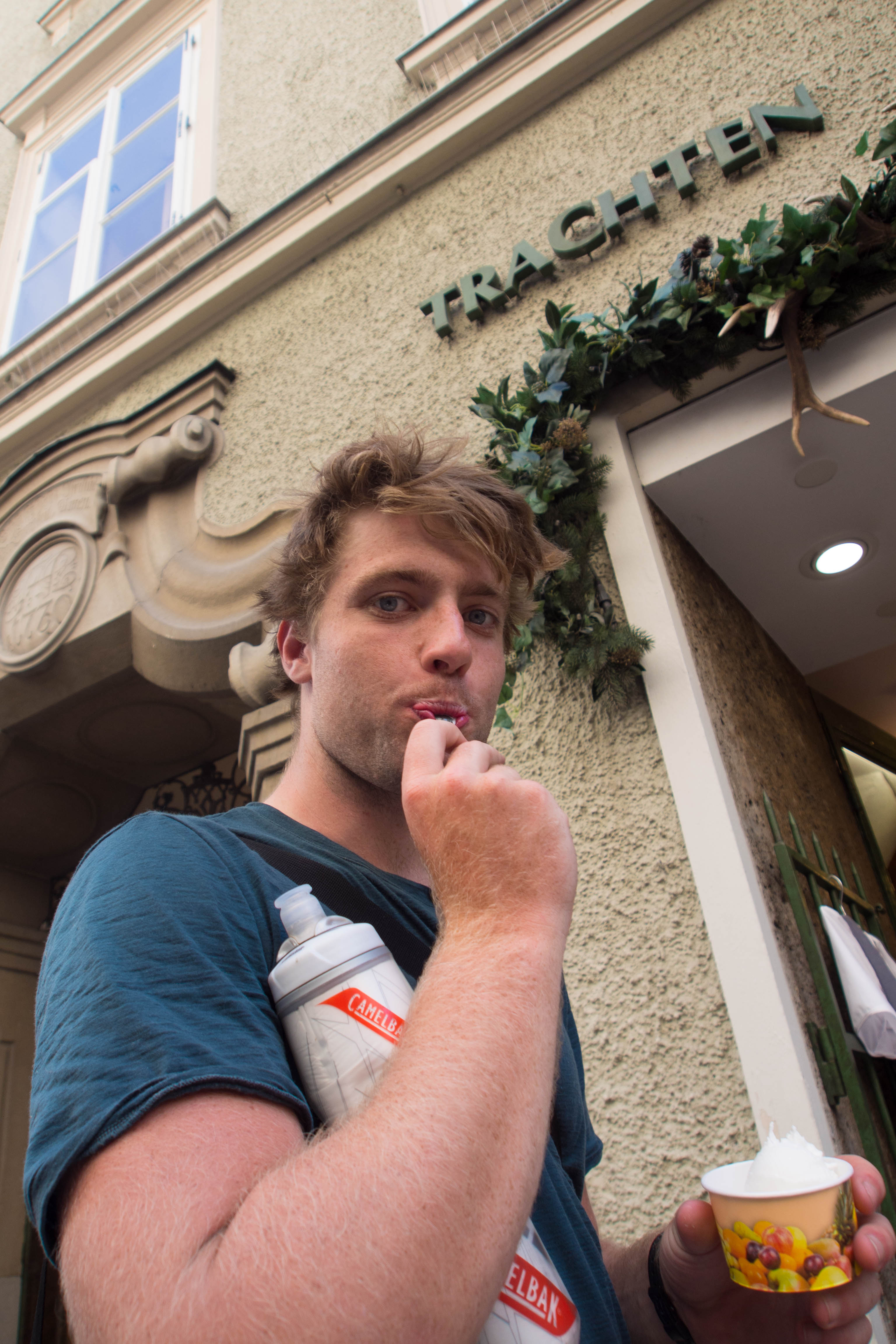 Trackbacks are closed, but you can post a comment. Austria-2 At 34 degrees the first stop in Salzburg was for an ice-cream