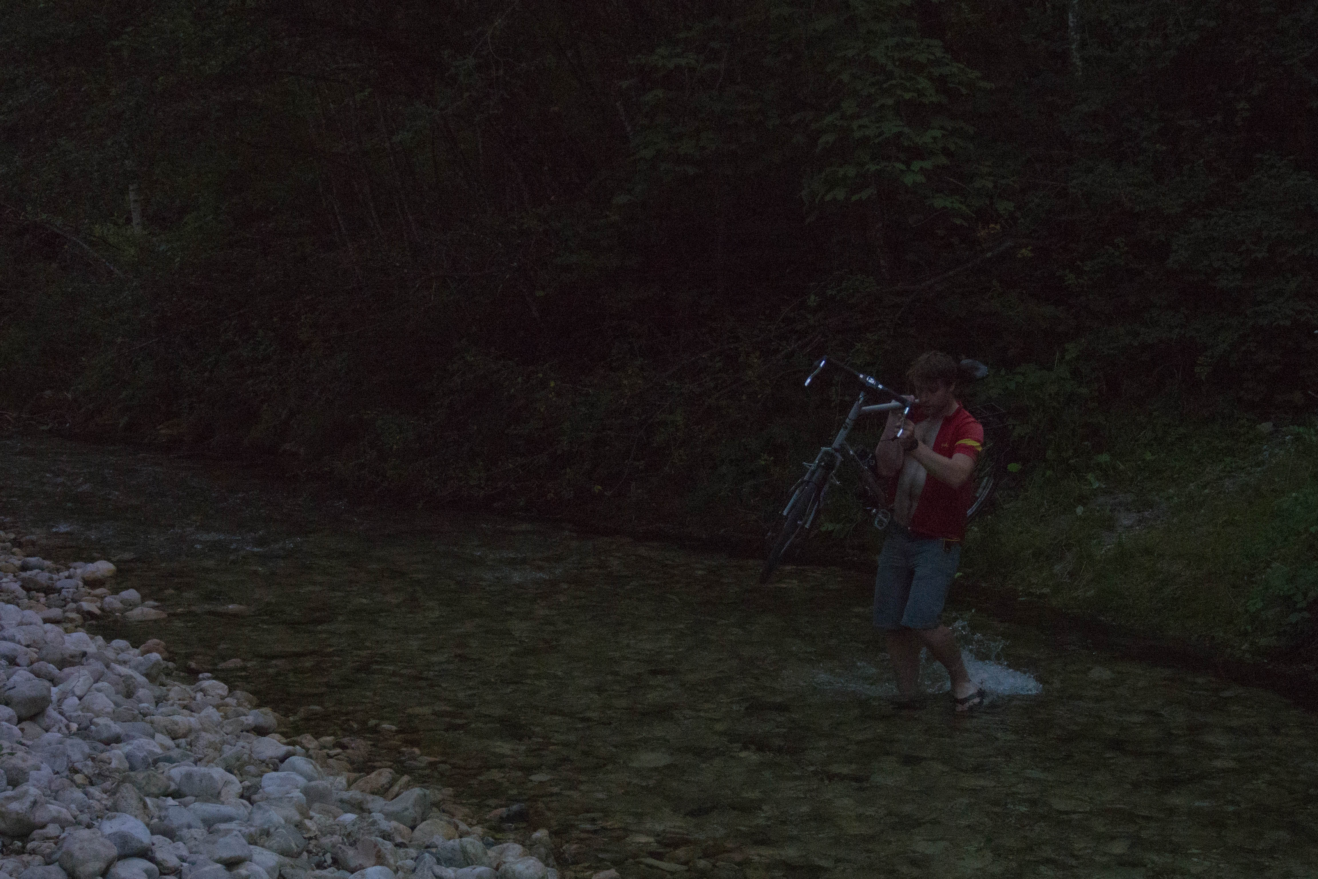 Trackbacks are closed, but you can post a comment. Austria-34 Hugo carrying his bike to riverside spot